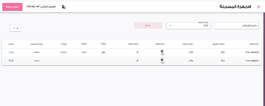 من خلاص الضغط على زر "عرض" سیتم عرض الأجهزة المسجلة على نظام iOS