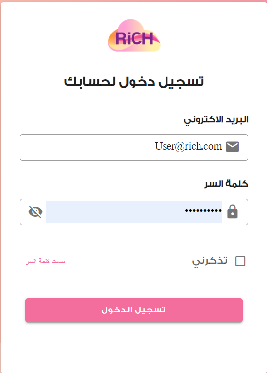 لتسجيل الدخول إلى نظام RiCH على المستخدم القيام بالخطوات التالية: