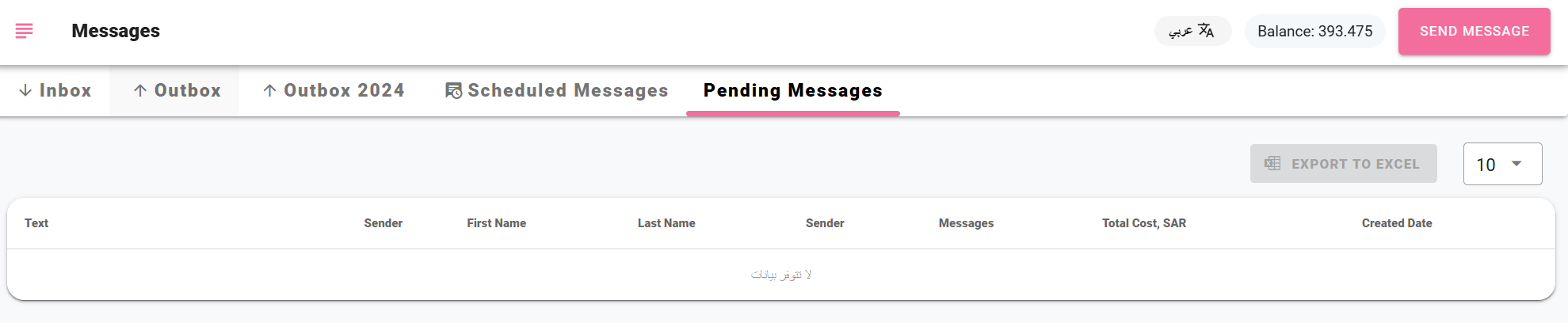On this page, the account administrator can manage messages that are pending approval before they are sent. The administrator has the option to approve or reject these messages.